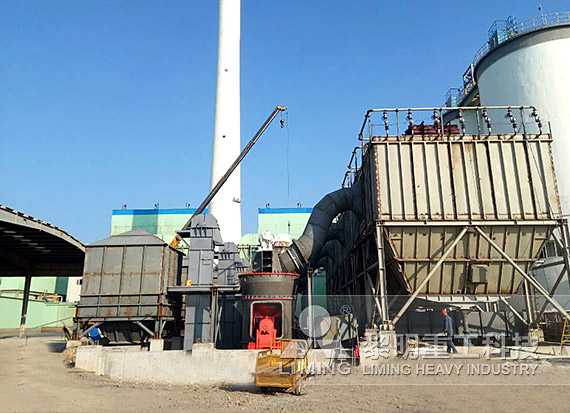 合格的石灰石塊料通過(guò)鏟車送入原料斗,經(jīng)手動(dòng)插板閥進(jìn)入底部的皮帶機(jī),并通過(guò)提升機(jī)輸送至立磨。物料從進(jìn)料口落入磨盤中央,在離心力的作用下,物料從磨盤中央向邊緣均勻移動(dòng),經(jīng)過(guò)磨盤上的粉磨輥道區(qū)域時(shí),受到磨輥的碾壓,大塊物料直接被壓碎,細(xì)粒物料受擠壓后形成料床進(jìn)行粒間研磨。被研磨的物料繼續(xù)向磨盤邊緣移動(dòng),直到被風(fēng)環(huán)處的強(qiáng)氣流帶走,而較大的顆粒物料又重新掉落到磨盤上繼續(xù)研磨。氣流中的物料經(jīng)過(guò)上部的分析機(jī)時(shí),在分析機(jī)的作用下,粗顆粒重新回到磨盤上粉磨,合格的細(xì)粉隨氣流一起出磨。細(xì)度合格的細(xì)粉出磨后進(jìn)入脈沖收塵器,并通過(guò)底部出料口之間的鎖風(fēng)閥進(jìn)入倉(cāng)泵進(jìn)行輸送?;烊胛锪系蔫F塊等雜物隨物料運(yùn)動(dòng)到磨盤邊緣時(shí),由于自身重量大而不能被風(fēng)吹起,跌落至磨機(jī)下腔,從排渣口排出機(jī)外。