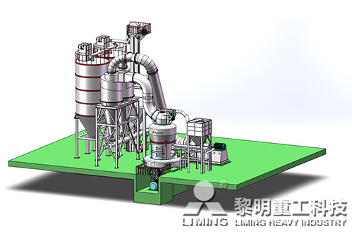破碎后合格的物料,經變頻皮帶給料機均勻定量連續(xù)地送入主機磨室內進行研磨。粉磨后的物料被風機氣流送入選粉機進行分級,在分析機的作用下,不符合細度要求的物料落入磨室內重新碾磨,合格的物料則隨氣流經管道進入旋風集粉器內,進行分離收集,經排料裝置排出即為成品粉體。分離后的氣流通過旋風集粉器上端回風管進入風機。該系統(tǒng)在正負壓狀態(tài)下運行,設備配有脈沖除塵器,環(huán)保。