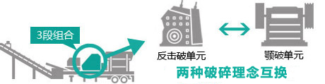 一種車身為8種機型通用,喂料單元互換系統(tǒng)、破碎單元互換系統(tǒng)和篩分單元互換系統(tǒng),只需再投資單機設備成本,短時間內(nèi),即可在同一車身上實現(xiàn)不同型號喂料單元、破碎單元和篩分單元互換系統(tǒng),整機各系統(tǒng)之間的匹配,適應場合更廣泛,破碎功能更強,客戶的消費品得到較大體現(xiàn)。